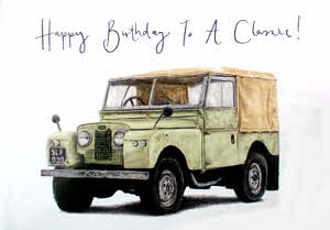 Give someone special a classic Land Rover birthday card which features a beautiful original hand-drawn Series Land Rover, touched-up with soft colouring.