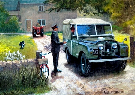 A highly evocative pack of 10 high-quality greeting cards (5 images x 2) featuring early classic Land Rovers in various country scenes.